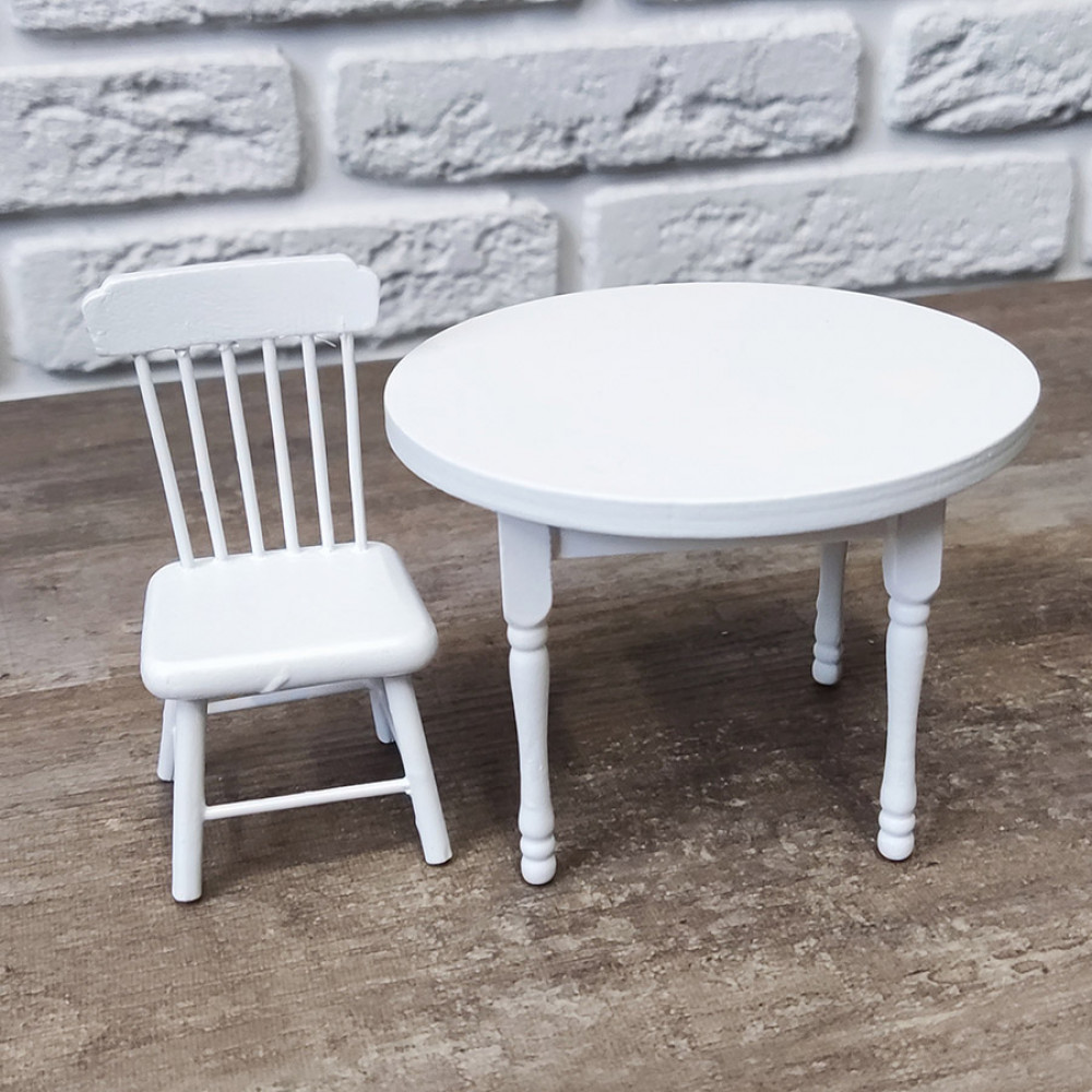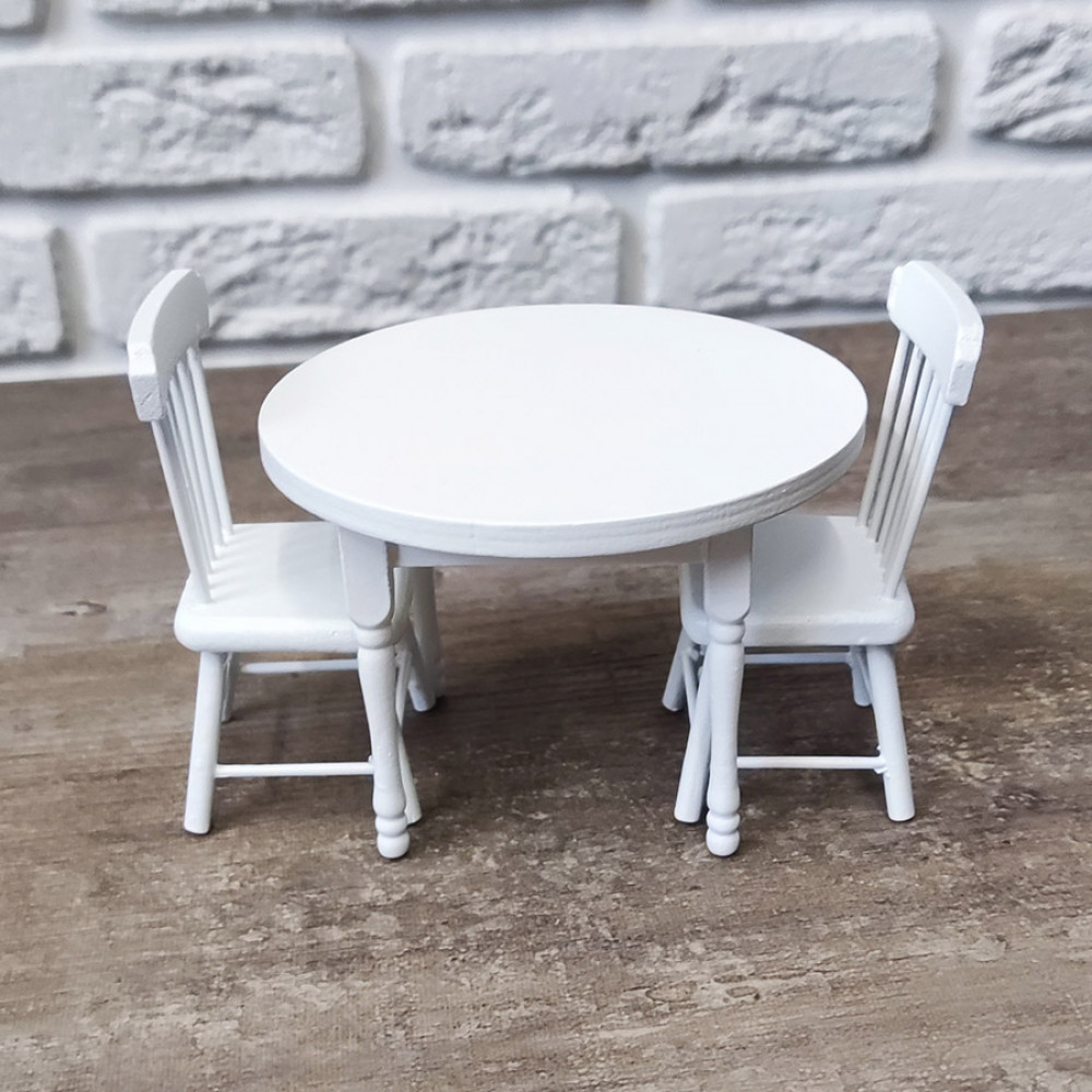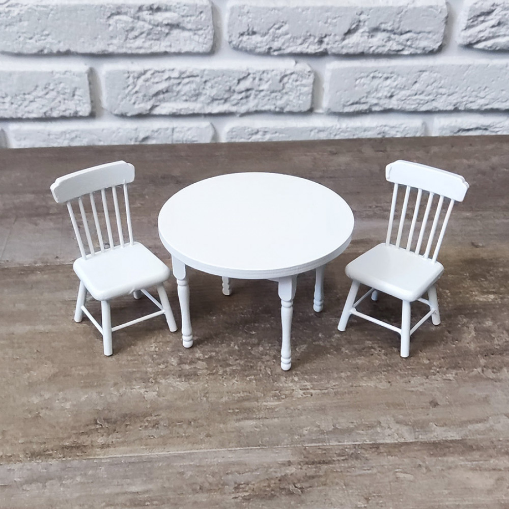 Стол круглый и пара стульев для кукол - без них не обойтись при оформлении миниатюрной кухни, столовой или тематического румбокса